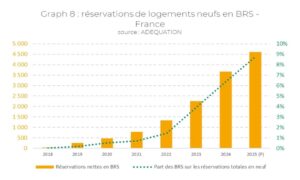 L’augmentation des réservations en BRS illustre bien cette situation : d’un marché anecdotique avant 2020 à près de 5.000 réservations attendues sur 2025, soit près de 10 % des ventes totales réalisées en promotion immobilière (graphique 8 ci-dessous).