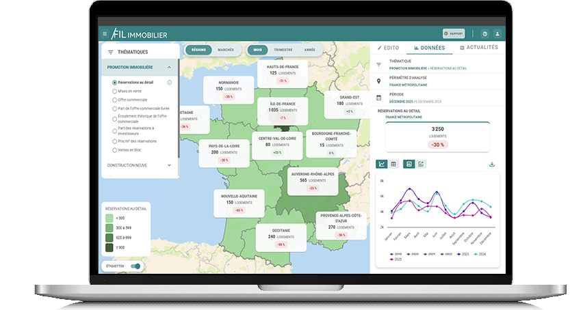 Data exclusives et réelles sur le marché du neuf, issues de plus de 250 acteurs de la promotion immobilière et requalifiées par nos équipes.